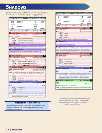 While the party may be the heroes of their story, they are by no means the only ones fighting against the wicked and vile! A retainer can join the party from a number of origins. An assassins guild might send one of their spies with the party following a successful negotiation — but only for one job. After fending off an encroaching thorn dragon, a wode elf scouting party might allow one of their number to travel with the party as thanks.
